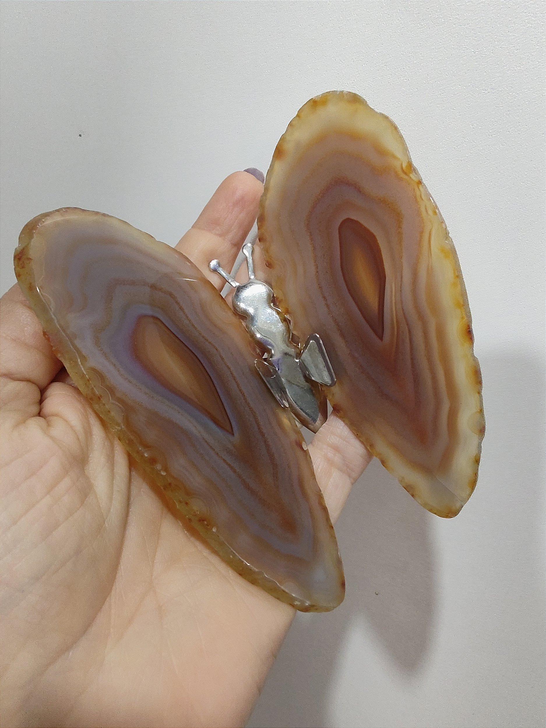 Composta por duas chapas de Ágata e corpo metálico, podendo abrir ou fechar mais as asas ( com cuidado para não quebrar).