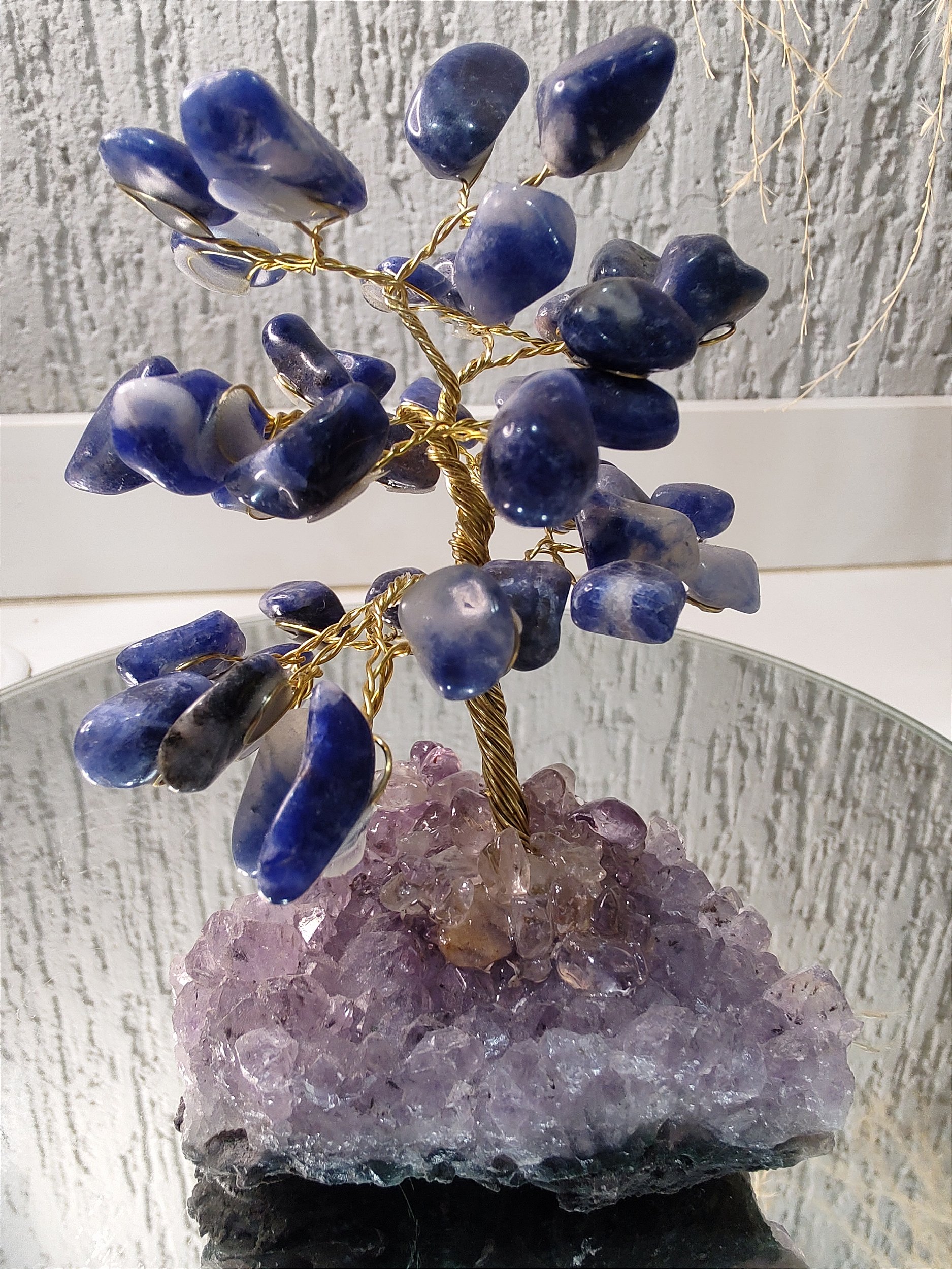 Dica: Você tem o Feng Shui aplicado em seu espaço? Se sim, esta peça é uma ótima dica para ativar a área da Família ( elemento árvore) ou a área do Trabalho, pois o matiz azul escuro da pedra Sodalita, é o tom deste GUÁ que remete água profunda, ajudando assim na área do Trabalho ( elemento Água).