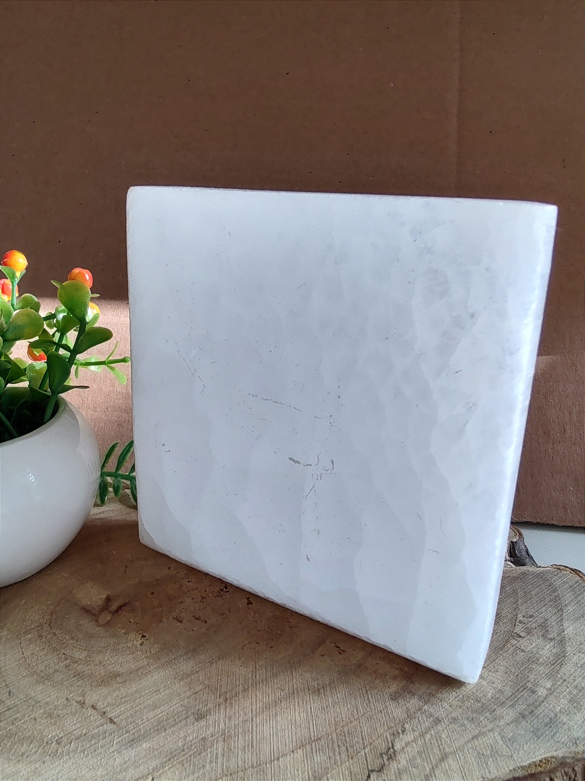 CURIOSIDADE: peque uma peça de selenita e deixe em cima de um papel seco. No dia seguinte, você vai ver que o papel está úmido abaixo da pedra.
