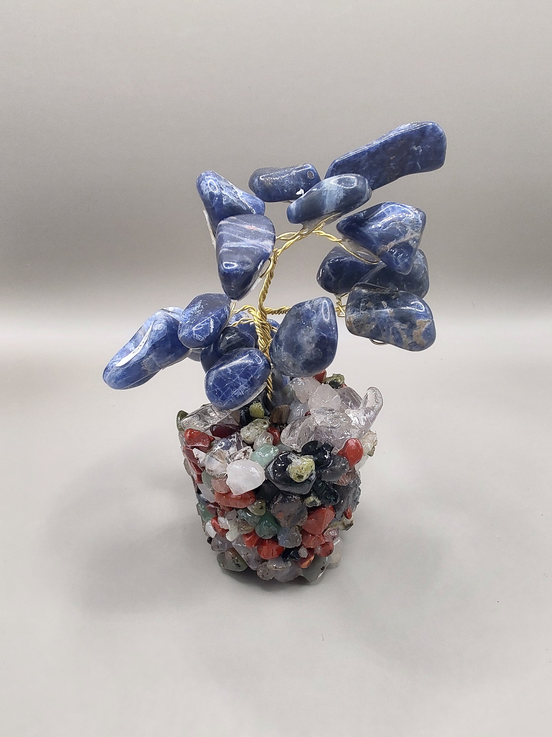 Base em um vasinho de mini cristais diversos.