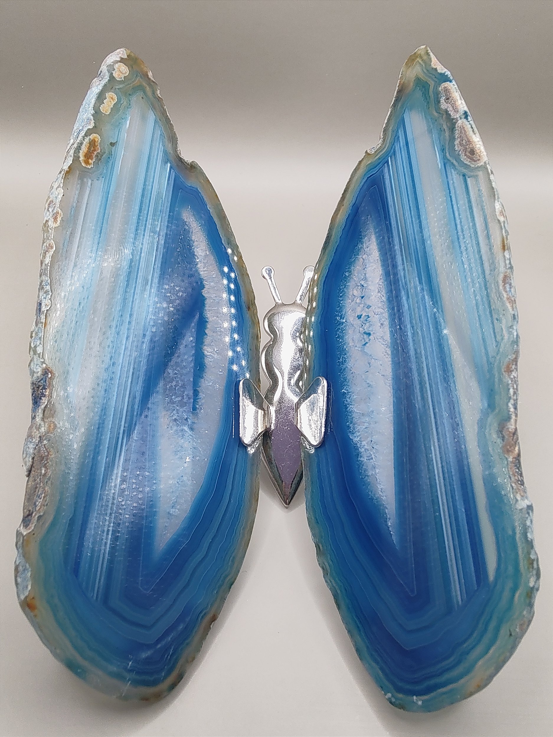 Composta por duas chapas de Ágata e corpo metálico, podendo abrir ou fechar mais as asas ( com cuidado para não quebrar).